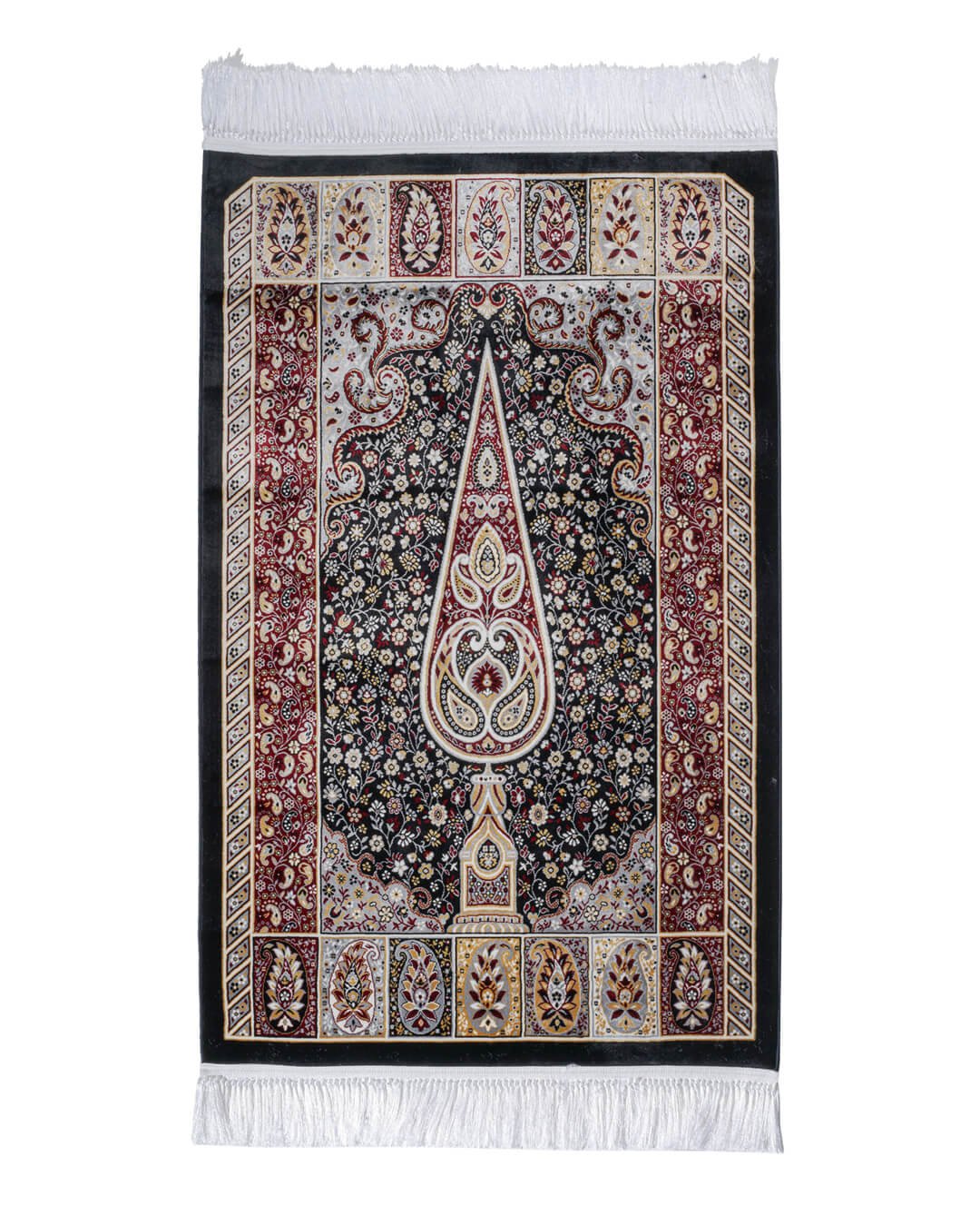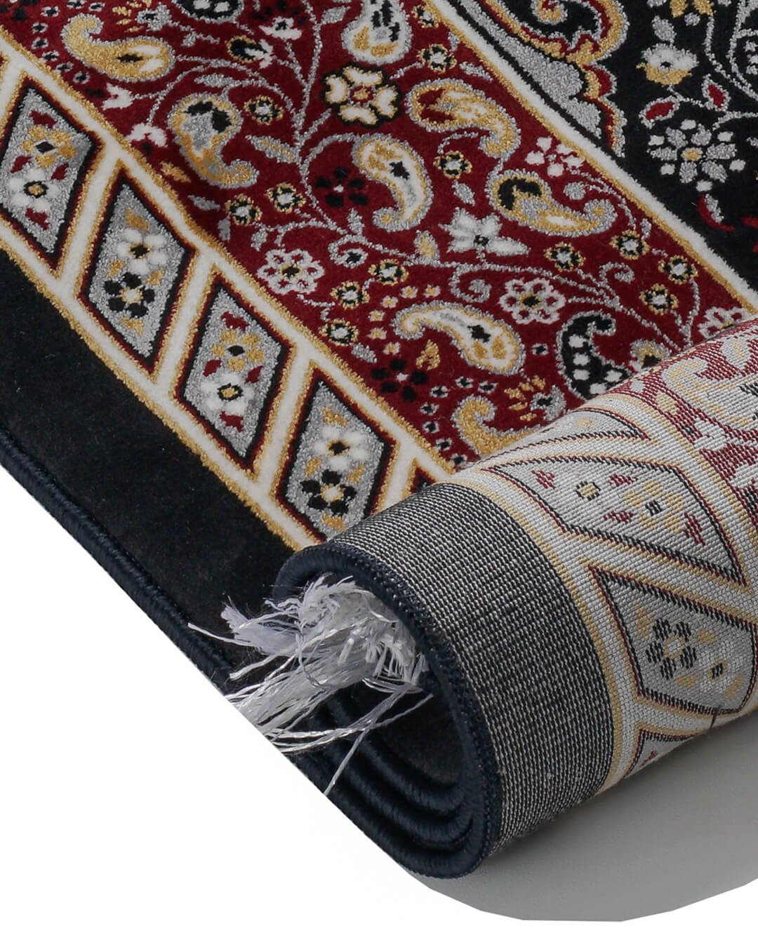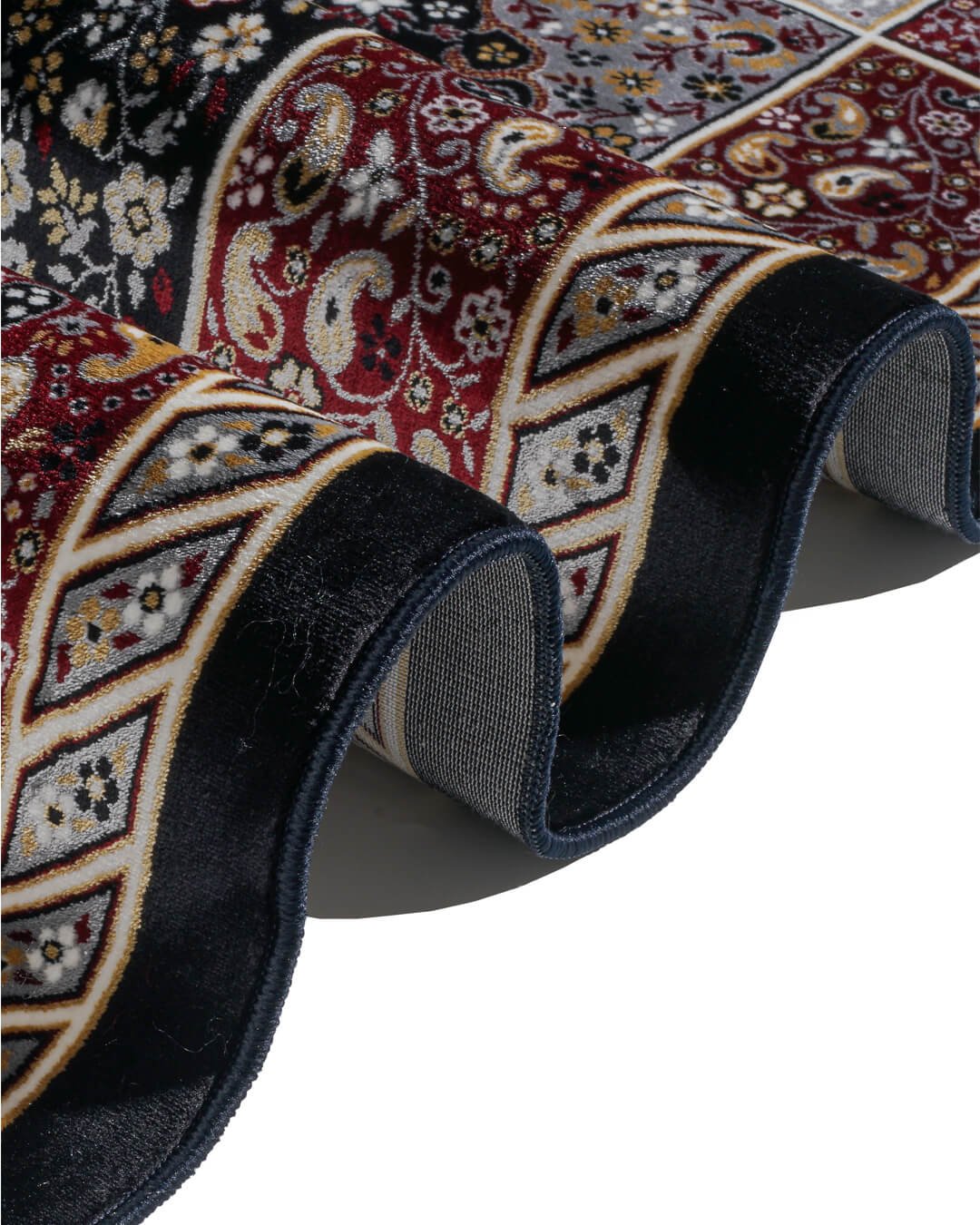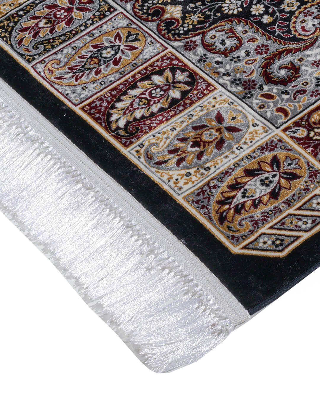- Desain Turki Autentik: Bidang tengah menampilkan desain agung yang bergaya menyerupai Mihrab, didominasi oleh motif paisley/boteh besar yang sangat detail, dikelilingi oleh pola bunga yang halus. Bagian tepinya dihiasi dengan panel persegi panjang tradisional yang menampilkan desain boteh yang saling melengkapi, mencerminkan seni Turki tradisional.